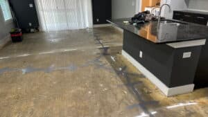 During a home inspection on a monolithic slab home in Charlotte, NC, visible cracking was found both on the exterior foundation and beneath the interior glued-down flooring. These structural issues raised concerns with the buyer and halted the sale process until a solution could be implemented.