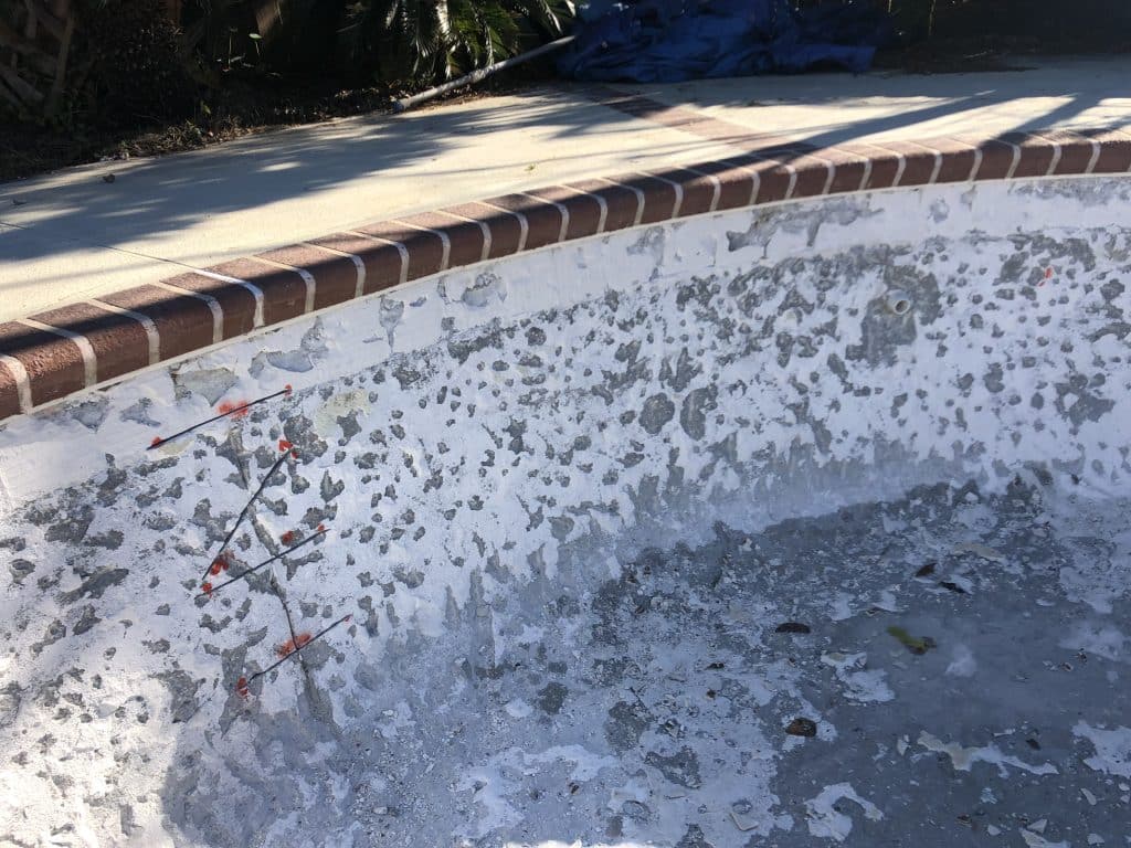 Multiple cracks were visible through the plaster in this South Carolina home owner's pool. After removing the plaster, the cracks were stitched and then covered with new plaster and paint. The contractor chose Crack Stitches over a product they had used in the past, cutting their labor in more than half.