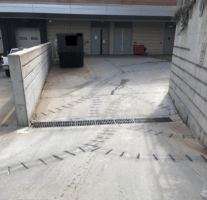 Project Scope: This loading dock contain inadequate steel in the concrete.  Opening and closing of the concrete under vehicle traffic was leading to severe cracking. An early version of the Crack Stitch was used along with epoxy injections to repair the slab.